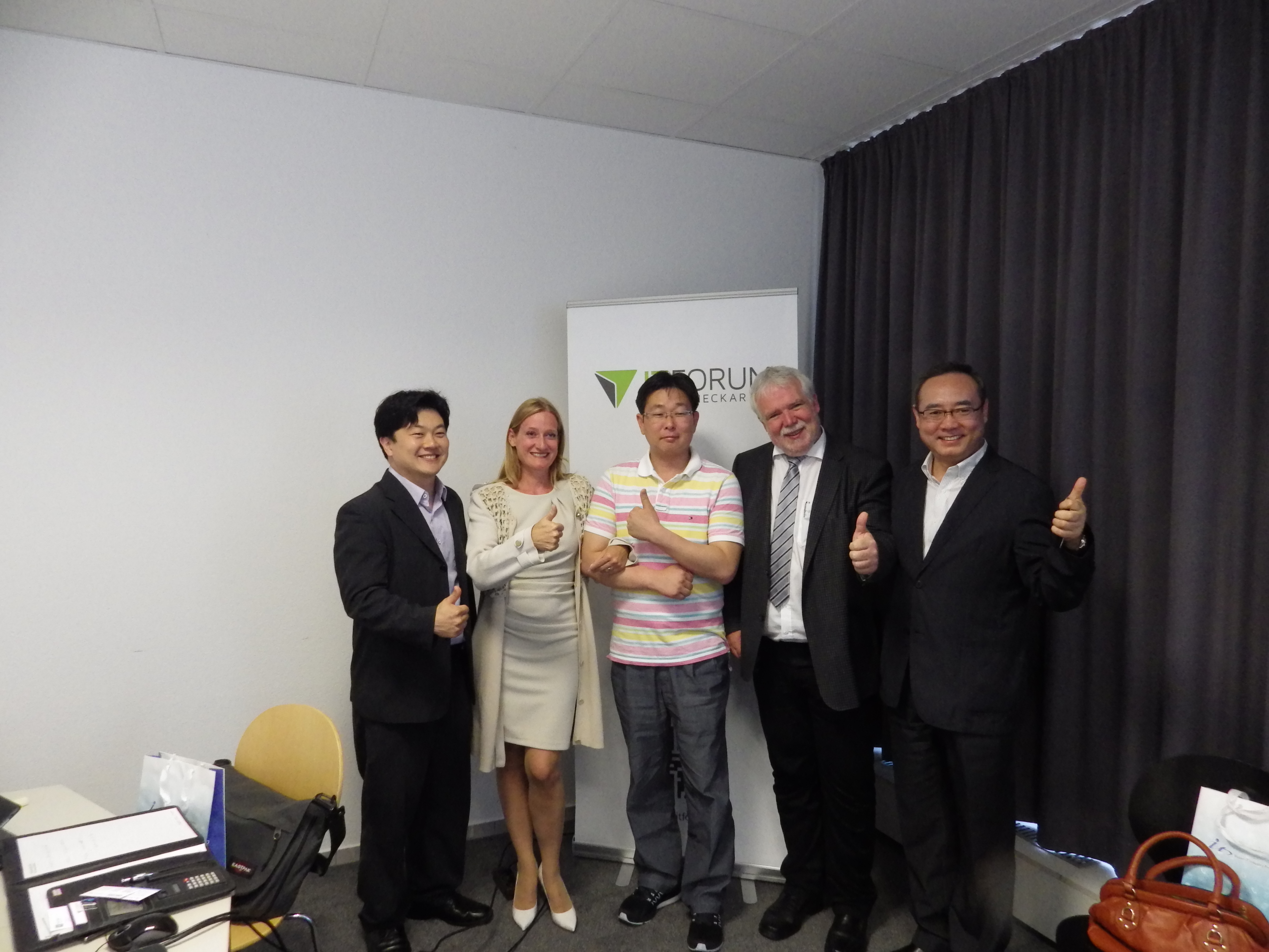 Am 30. Juni bekam das IT Forum Besuch einer koreanischen Delegation. Die Gruppe aus koreanischen Unternehmern aus der IT-Branche und Unternehmern aus Ludwigshafen traf sich am Vormittag bei der Wirtschaftsförderung. Zuerst folgten die Teilnehmer den Ausführungen von Peter Schubert, Vorstand im IT Forum und Geschäftsführer der Softwarekontor GmbH, über den digitalen sowie mobilen Index in Deutschland. Anschließend gab es Zeit zum Austausch und Geschäftsanbahnungen bis die Delegation weiter zum Flughafen fuhr.